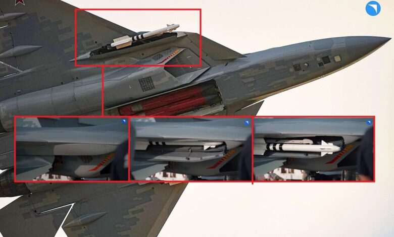 در جریان نمایش پروازی در دبی، نمونه اولیه Su-۵۷E در برابر دوربین‌ها، یکی از مهم‌ترین بخش‌های داخلی خود را به نمایش گذاشت. هواپیما هنگام عبور از مقابل تماشاگران، پوشش باریک و قایق‌مانند محفظه جانبی را در ریشه بال باز کرد. سپس سازه پرتابگر، بدنه موشک کوتاه‌برد را که در این نمایش یک ماکت هم‌اندازه نمونه واقعی بود، به آرامی بیرون آورد و در معرض جریان هوا قرار داد و دوباره آن را به داخل بدنه بازگرداند.