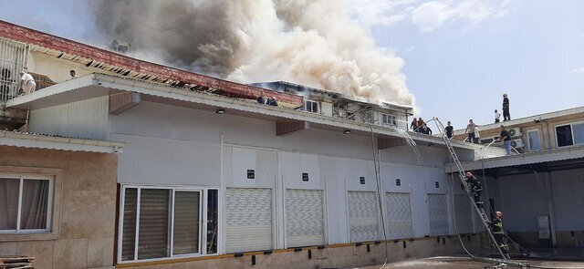 مأموران آتشنشانی در حال تلاش برای اطفاء آتش هستند.هنوز ابعاد دقیق و علت حادثه مشخص نیست.