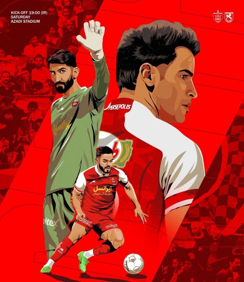 پرسپولیس برای بازی پایانی پوستر خود را در سبک طراحی وکتور و با حضور عیسی آلکثیر، اوستون ارونوف و البته علیرضا بیرانوند انجام داد. سه بازیکنی که میتوانند مهره قهرمانی پرسپولیس در بازی روز شنبه باشند.