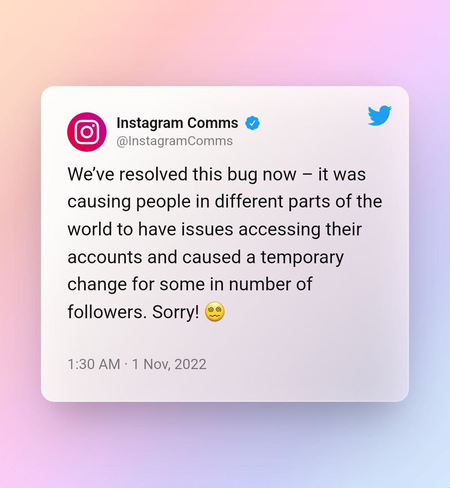 اینستاگرام روز گذشته اعلام کرد این ایراد فنی از آنهاست و همزمان آدام منصوری از متخصص ایرانی این پلتفرم در پستی از تلاش برای حل مشکل نوشت و حالا با گذشت ۲۴ ساعت از شروع مشکل، اکانت رسمی اینستاگرام که بیش از یک میلیون کاربرش را از دست داده است نوشت مشکل ساسپند شدن ناگهانی کاربران رفع شده است. آنها البته از کاربرانی که اکانت های شان از دست رفته یا فالوررهای شان ریزش داشته عذر خواسته اند.