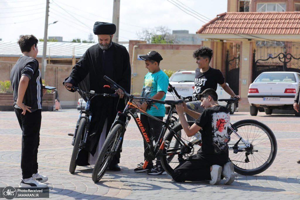 عکسی وایرال شده از یک امام جمعه در میان نوجوانان دوچرخه سوار